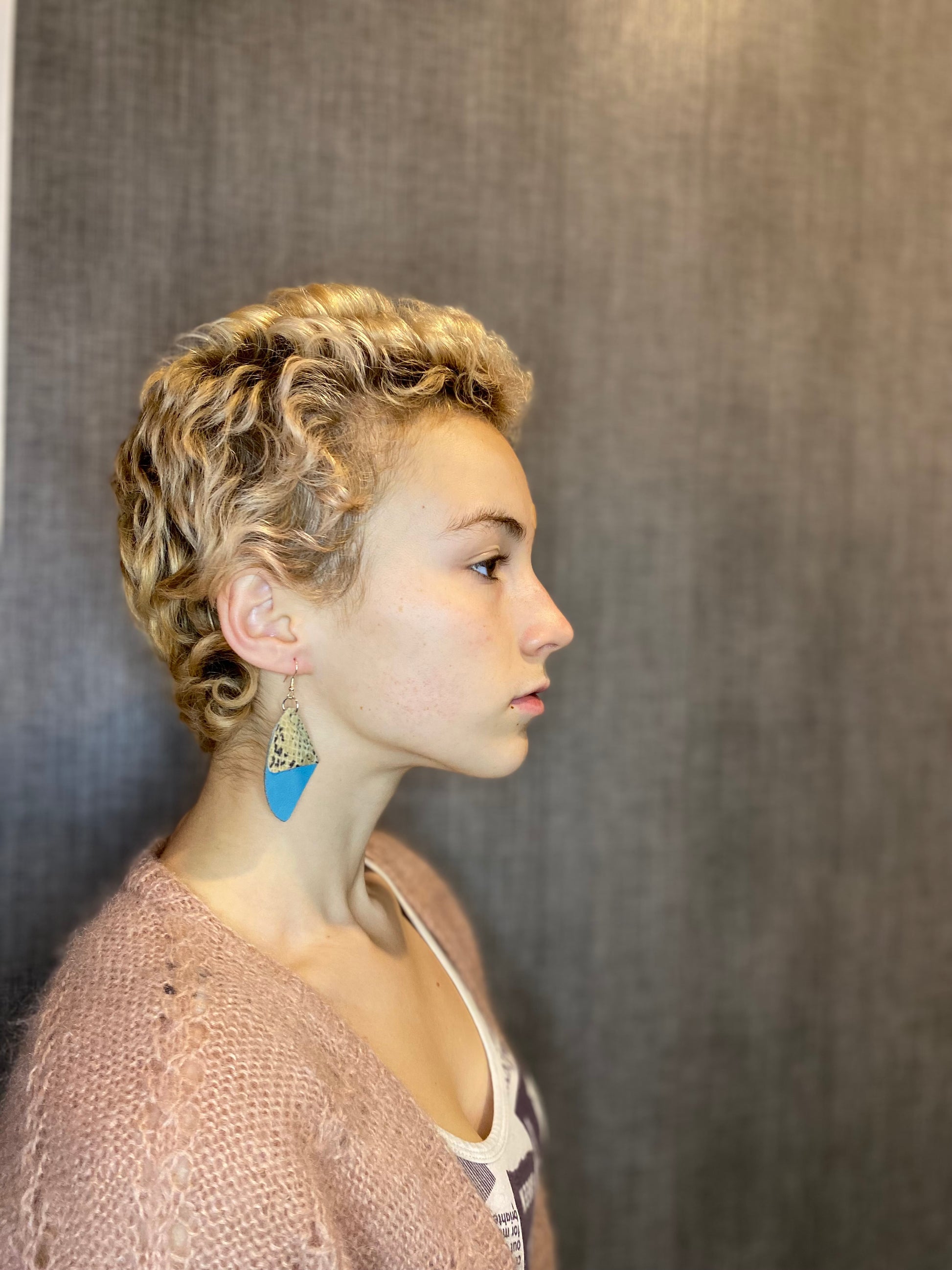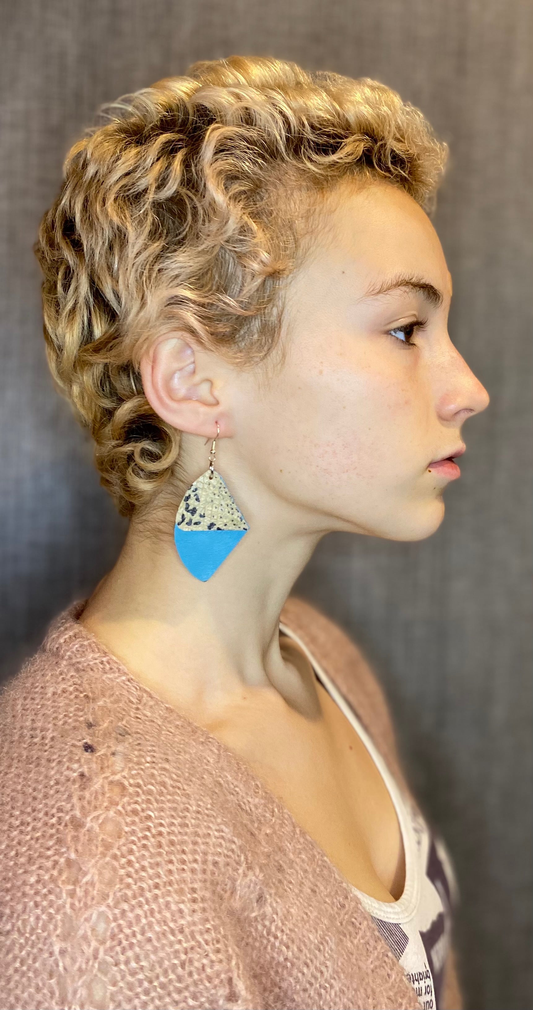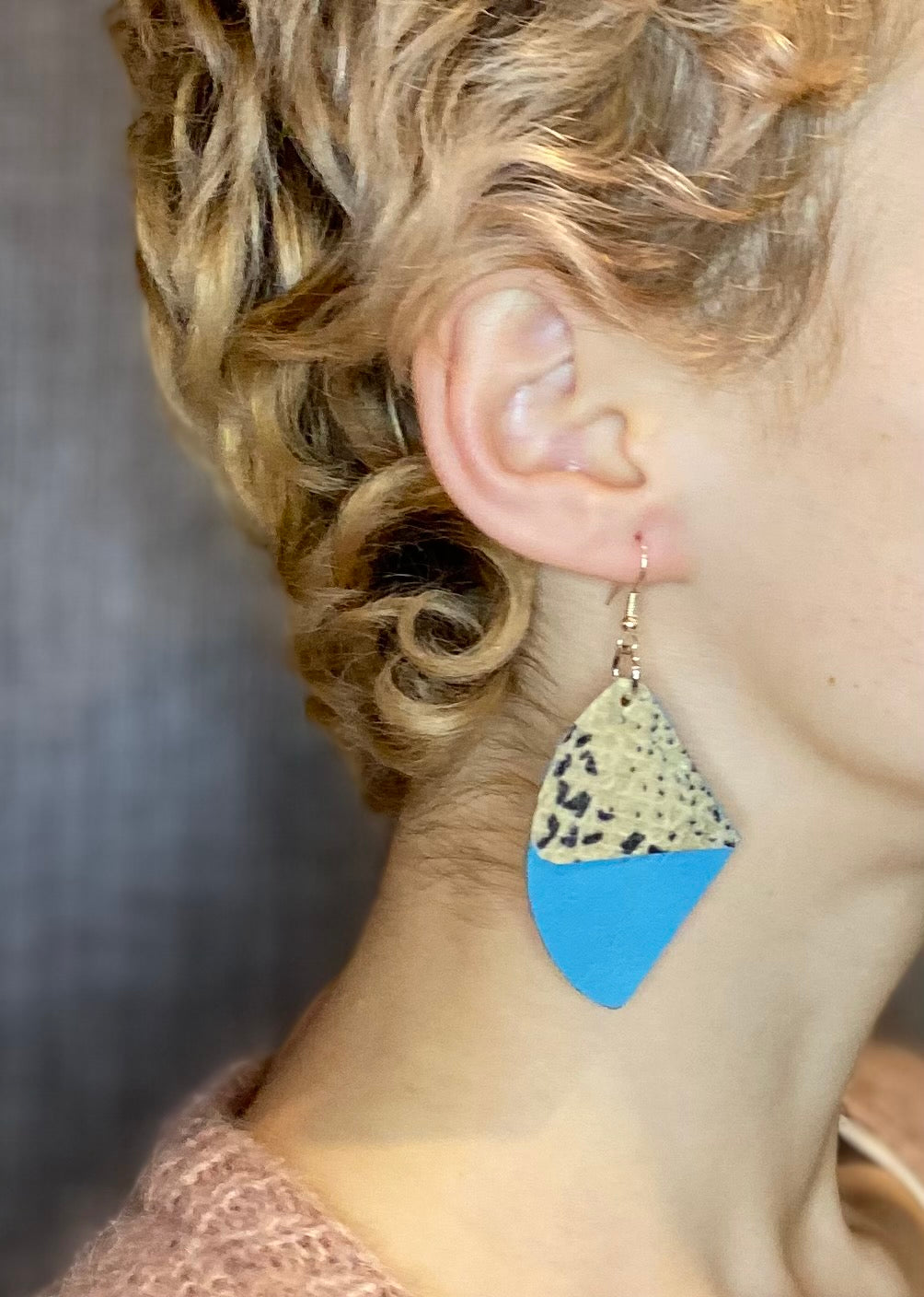 Two tone drop earrings. Made from our remnant pieces of reclaimed leather.